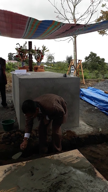 Hinalang- Pdt Jhon Rickky R Purba MTh melakukan peletakan batu pertama pembangunan Pusara “Monumen Makam Hinalang” (St RK Purba) di Desa (Nagori) Hinalang, Kecamatan Purba, Kabupaten Simalungun, Provinsi Sumatera Utara, Selasa (22/10/2019). Acara Peletakan Batu Pertama dilakukan sederhana dengan Doa oleh Pdt Jhon Rickky R Purba MTh.