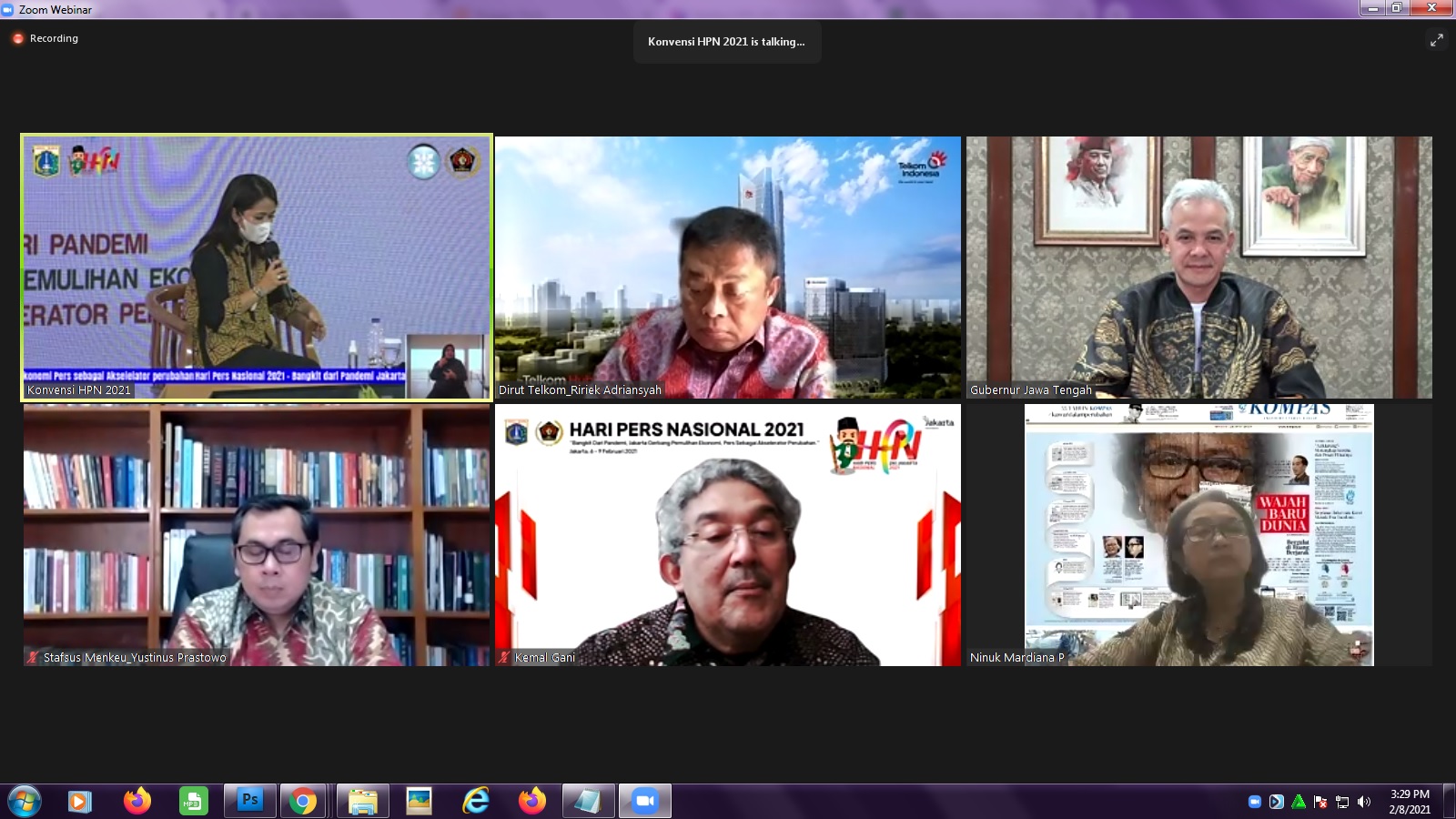 | WABINER Vie Zoom Meeting Konvensi Media HPN 2021, Senin (8/2/2021). (Kolase Zoom/Asenk Lee Saragih) |