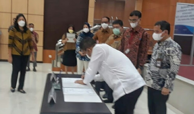 Medan, BS-Bupati Simalungun Radiapoh Hasiholan Sinaga, didampingi Plt Inspektorat Roganda Sihombing dan Kepala BPKAD Frans N Saragih, Plt Kadis Kominfo SML Simangunsong menyerahkan Laporan Keuangan Pemerintah Daerah (LKPD) Un Audited Se-Propinsi Sumatra Utara TA. 2021 bertempat di Auditorium BPK Perwakilan Sumatra Utara Jl. Imam Bonjol No.22, Madras Hulu, Kecamatan Medan Polonia, Kota Medan, Sumatera Utara, Selasa, (21/3/2022).